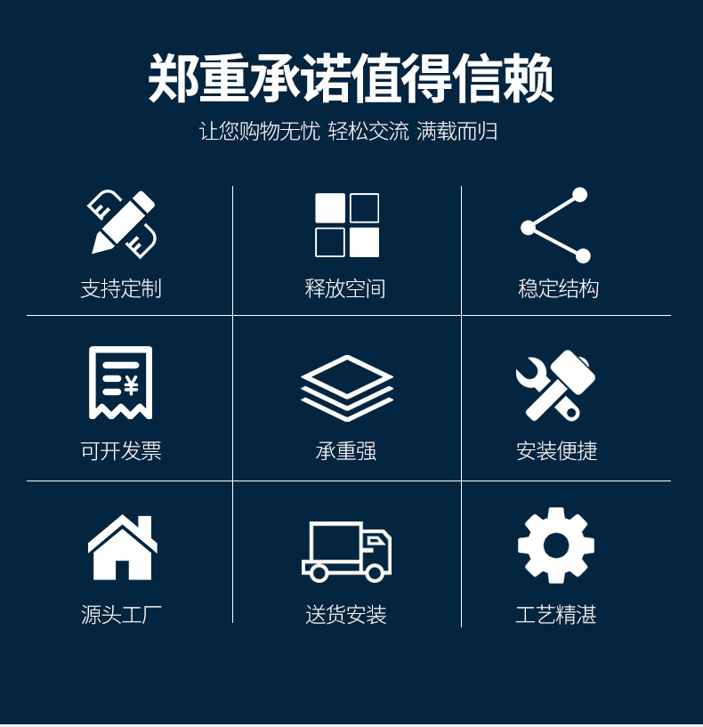 2、閣樓平臺的目的地,我們銷售貨架涉及全國,目的地距離的遠近也會直接影響到貨架運費,距離越近運費則越便宜,不過我們也都有配送部門,會根據采購量安排適合的運輸車,合理控制運輸成本.