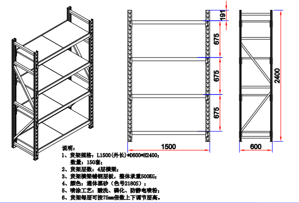 上圖貨架是我司給深業(yè)上成店做庫房貨架,根據(jù)整個現(xiàn)場的裝修風格來設計貨架,層數(shù)為標準四層,歷15天的生產(chǎn)時間,貨架終于生產(chǎn)好了,看整體效果是非常不錯的,高端大氣上檔次,下面介紹一下貨架:L1500*W600*H2400 數(shù)量:150套