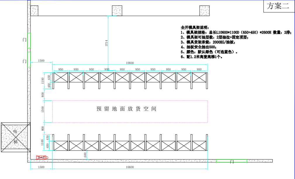 以上案例是最近一個客戶找到我,讓去看一下他們場地模具幫忙出個貨架方案,由于客戶的模具是比較大型,重量也比一般的模具要重,我們這邊當(dāng)時沒給出方案,和客戶約了時間去場地實地考察,工程考察完根據(jù)客戶場地模具大小的實際情況給客戶出了兩個方案,最后客戶選擇了方案2